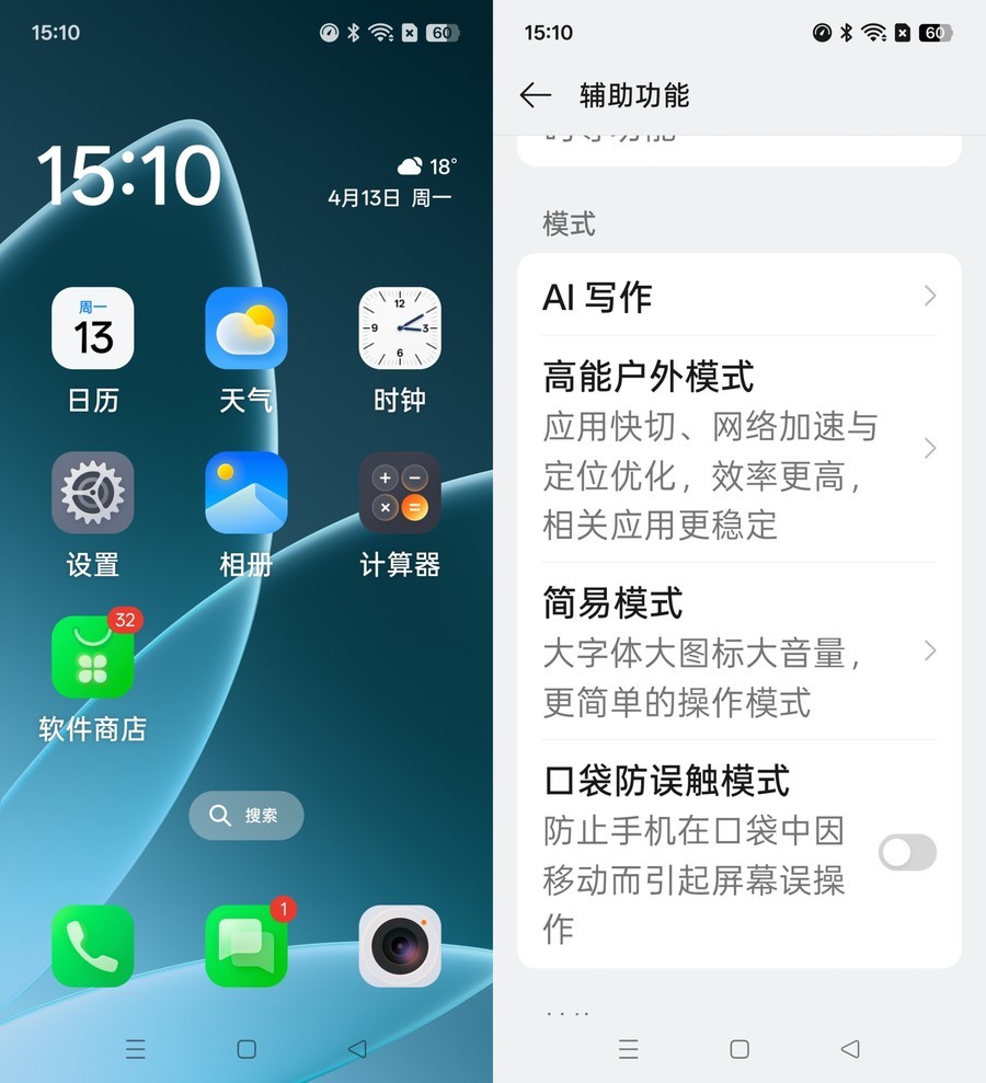 而且它还针对长辈优化了听觉与视觉体验,扬声器音量提升至 300%,听筒音量提升至 200%,大图标大字号设计,让长辈不戴老花镜也能轻松操作。