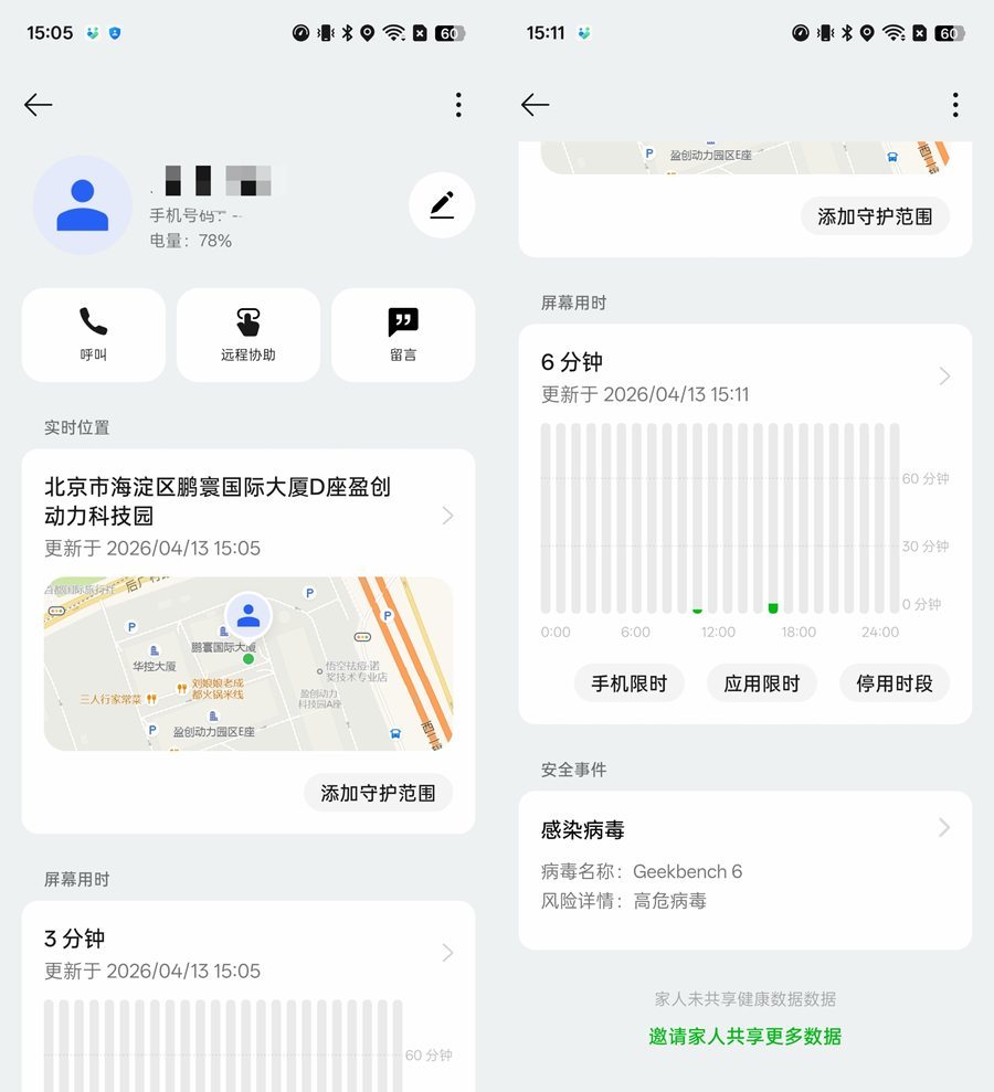 OPPO A6s Pro也很适合买来送给家中长辈,除了耐用流畅、续航久,它还聚焦各类长辈使用需求,在家人守护功能中可以实时查看家人定位、设置安全范围,接收风险提醒,配合OPPO手表还能远程查看健康数据,支持双向远程协助,即便子女不在身边,也能轻松帮长辈解决用机难题。