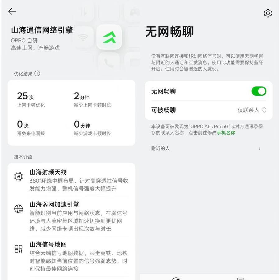 针对户外与出行场景,OPPO A6s Pro打造了全套山海弱网通信与辅助定位方案,成为户外工作者的可靠搭子。山海360°增强天线让信号强度提升至2倍,弱网加速引擎可在高铁、地铁等场景智能选网,无网畅聊功能支持OPPO设备间隔空传送语音图文,彻底摆脱信号盲区困扰。而且还提升了在地库出口、城中村等信号较差或复杂场景中的定位精准度,非常适合外卖、快递配送员等户外工作者。